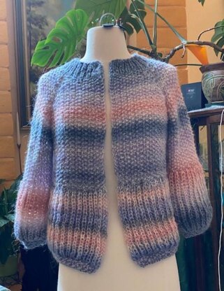 Knitted 2 ply with Ice yarn, Mohair Pastel . Pattern Rating: easy-intermediate ¾ sleeves, raglan, knitted top down. I always knit and then write my patterns. The pattern is very detailed written and has pictures to help you better to accomplish this beautiful cardigan.