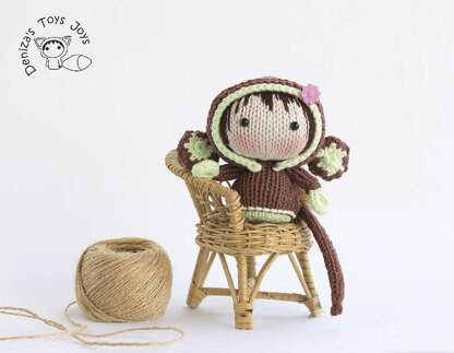 Monkey Doll with removable hood.. The finished sheep doll is approximately 4,33 inches (11 cm) tall.
