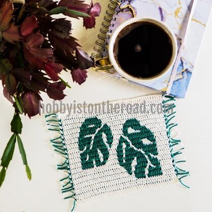 Crochet your own Monstera Leaves Coasters, using the Mosaic Overlay technique.