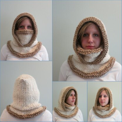 The unique layered design of the Montana Hat makes it a versatile and remarkable winter accessory for those who live in cold climates. The construction incorporates a generous hood and two cowls, all knitted together. The generous hood accommodates layering another hat such as a beanie (not included in this pattern). The outer cowl lays smooth (without bunching) so that it can be worn under or over your coat, providing extra warmth to your shoulders, upper chest and back. The exclusive inner cowl can be pulled up high over your face for those extra blustery days and it can be worn loosely around your neck.