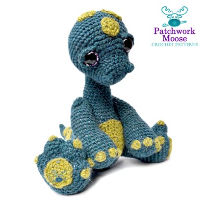 This is Monty, a sweet little dino, looking for a friend. Monty measures about 8-9 inches sitting in a DK yarn, but he can be made from any weight yarn and appropriate hook for different sizes. It is an easy pattern to follow with plenty of diagrams and you will always be welcome to contact me for any extra help. This pattern is in US Crochet Terminology.