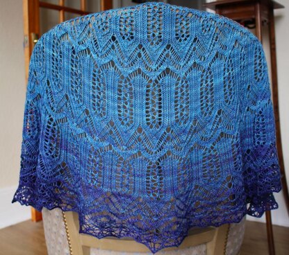 This crescent shawl is 51'' (130 cm) in diameter. I used a 150gr gradiance set of Unique Sheep Luxe. It is such a lovely, soft yarn.