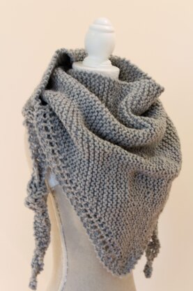 It is knitted on two needles, increasing to the widest point of the ‘V’ and then decreasing again. The needles are larger than normal which helps give a lose feel to the item. The pattern is easy as you only need to know a few basic stitches, cast/bind on and off, knit, purl and yarn over.