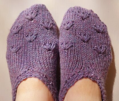 - Maximum 94 beads. I have used Efco silver lined indian beads. 100g of yarn will be enough to knit a pair of slippers in any of the sizes.