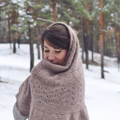 This half pi features an interesting construction: the different lace portions of the shawl are worked alternatively on the right side of the fabric and on the wrong side, creating a unique texture. An attached border is then added to bind off all the stitches.