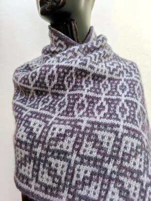 I used two skeins each of Dusk and Quicksilver for the wrap.
