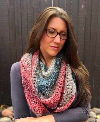 This bias shawl begins with just 7 sts and expands to a beautiful crescent/triangle shape through increases and decreases. This scarf is great for someone who likes to use the entire ball of yarn because you can just keep going until you run out.