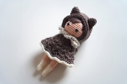 The Mori Girl Doll pattern features a sweet amigurumi with three different outfits and a total of seven accessories to dress her up in. That includes a kitty cat ear hood, teddy bear ear bonnet hat, scarves, dresses, and a sleep sack (or sleeping bag). This amigurumi design is relatively quick to work up and can easily be customized with different yarn color combinations and added embellishments or appliques. Children will love playing dress up with the clothes and extra items in this bundle! Crochet this great play toy set for kids birthday or holiday gifts!