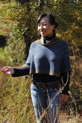 This poncho is worked in rounds from top down. After the neck is done, increase at front and back all the way to the bottom edge. When you alternate MC and CC, twist the yarn one time at the round joins. The round joins should be placed to the center of the back. The length of the poncho is very flexible and can be changed by adding up or taking away pattern repeats. In this case, always purl for first round of garter stitch, and knit for 2nd rnd. Enjoy the pattern Incase that anyone haven't get the updated version. There is an update in the second round of the Body Next rnd, K 13 (14, 15, 16), pm, M1R, k1, M1L, pm, #K 27 (29, 31, 33), pm, M1R, k1, M1L, pm, rep from #, 3 times, k 14 (15, 16, 17). — 120(128, 136, 144) sts remIncrease pattern of row 9: Row 9: K2tog, Remove m, K4, pm, m1R, k1, m1L, pm, k4, remove m, There are 3 sts bet markers.