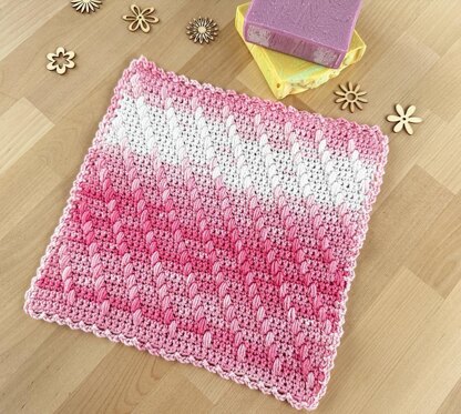For this crochet washcloth, you can adjust the size by chaining any multiple of 5 plus 8. For example, a multiple of 5 in this pattern is 35, then add 8 to this number, so we chain 43.