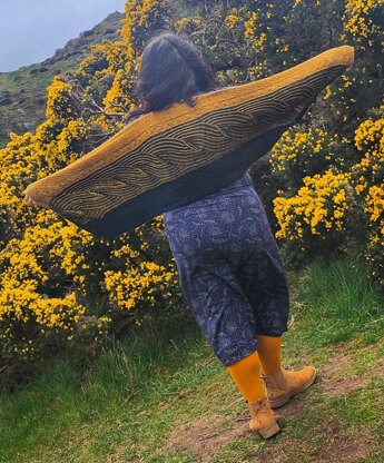 Morvoren is a rectangular wrap inspired by the legend of the Mermaid of Zennor and the carved wooden bench in Zennor church.