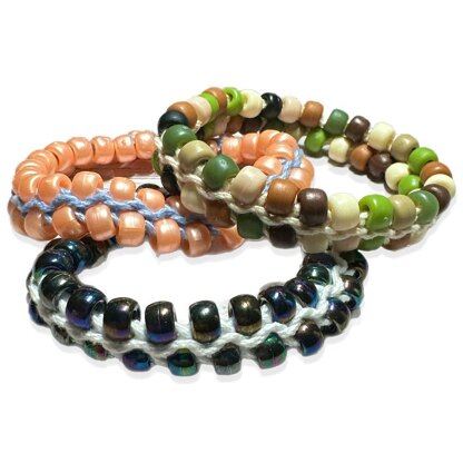 1. Basic stitches, worked flat then easily joined to form the bracelet, no pre-stringing beads.
