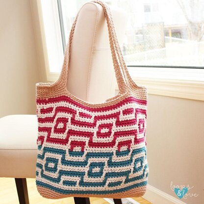 The Mosaic Summer Tote is made from the bottom up using the mosaic crochet technique for the body of the bag to form the fun design. The handles/straps are crocheted in the last few rounds at the top of the bag.