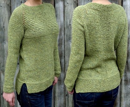 This relaxed fit sweater, worked top-down, in round, features a combination of knit and purl panels, creating an intriguing design. The pattern offers two length variation for this design, short as a trendy cropped sweater or standard length with an asymmetrical bottom hem. Knit this for yourself or as a gift for someone special!