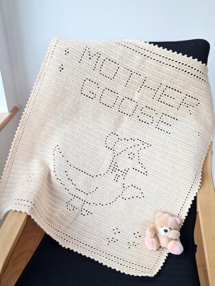 This cute crochet baby blanket with "Mother Goose” pictured surrounded by cute little flowers would make a wonderful gift to make for a new baby, gifted along with a book of favourite nursery rhymes. It would make a wonderful keepsake gift for a newborn and would be received well at a baby shower.