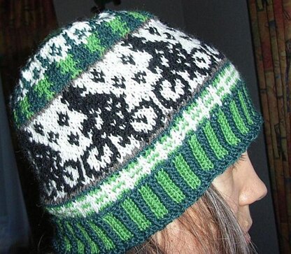 I got a request for a mountain bike beanie with much green in it (as these are the team colors). So there you are. I had much fun drafting and knitting these guys :)