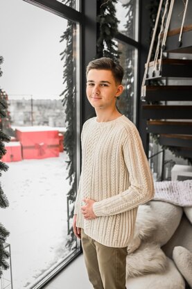 “Mountain Climber” children’s & men’s sweater is worked is worked seamlessly in one piece from the top down in the round, starting at the neckline, featuring the contiguous shaping method.