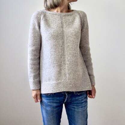 This design is sort of like that. You knit what seems to be an ordinary top down pattern with a couple of extra increases and decreases, and some garter stitch details along the way, all the while quite possibly wondering what you are doing them for. But once you bind off and try it on, you see the effect that those extra little steps have had. The result is a simple and flattering pullover; one which has details that give you pause when you look in the mirror and make you appreciate the view!