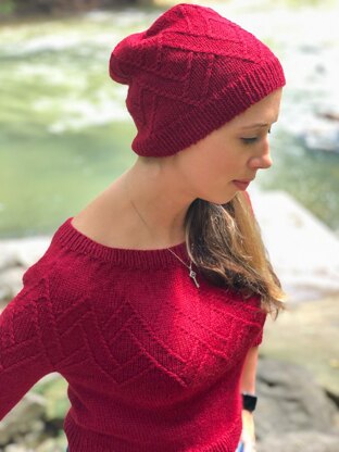 This mountain motif is knit in simple, addictive 1/1 cables, easy to cross without a cable needle for faster working. The crown decreases spring from each mountain peak, creating a gorgeous star-like crown. Knit in a DK-weight yarn, it will fly off your needles--perfect as a pair with the Mountain Song sweater or as a stunning accessory all by itself.