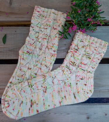 100g of fingering weight/Light fingering weight sock yarn. Sample socks were made using Uschitita Merino Sock.