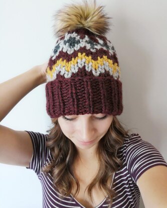 Meet the Mountaintop Toque. To me, this hat is perfect for cold winter days. Fair isle gives it a classic look, with a faux fur pom to make it modern enough to wear every day. Perfect for hikes, après ski, and sipping hot coco. However you choose to rock your toque, you’ll be wearing something you made all by your beautiful self.