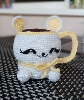 The PDF includes step-by-step instructions on how to crochet a Mouse Mug, embroider the face, and sew all parts together.