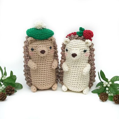 Mr. and Mrs. Hedgehog are the newest members of a group of crocheted woodland animals called the Forest Friends. They are as friendly as can be, despite their prickles. The hedgehogs are an original amigurumi design and work up quickly. Your PDF purchase includes written instructions with a photo tutorial. You will receive directions for crocheting both hedgehogs. You'll need the yarn colors pictured (worsted/aran weight), a size E/3.5mm crochet hook, a yarn needle, stuffing, safety eyes, and an intermediate crochet skill level (or give it a try if you're an ambitious beginner!). The finished hedgehogs are about 6" tall.