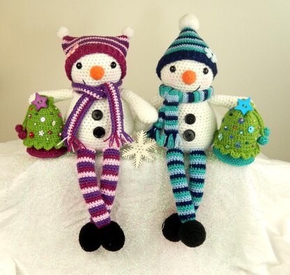 These dolls are ideal as shelf sitters for your Christmas/winter display, or as cuddly toys for gifting. Mr & Mrs Snow are very quick to crochet as their bodies are made by using doubled up yarn. Leave the legs off entirely and you can use them as doorstops too! Included in the pattern is a little drawstring Christmas tree purse to complete the ensemble. You have the option of attaching the gift bag to the doll and filling with candy, coins or other small presents to make a fun gift extra special. If you prefer, the purse can also be filled with toy stuffing to make a pretty ornament.
