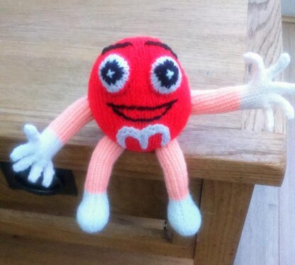 Mr M&M Red candy man is knitted flat, seamed and then stuffed. Step by step instructions are given for each piece required and there is a section at the end on how to put the pieces together.