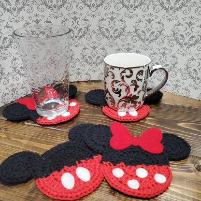 Beautiful two-tone mouse inspired coasters with attached felt details. Worked in the round with multiple colors, this pattern is slightly above beginner difficulty, but those with some crochet experience should be able to follow along with ease.