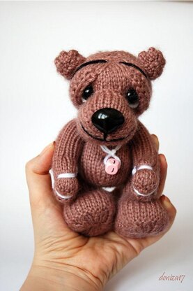 The toy is knitted round and that is why the pattern is recommended for Advanced Beginner Knitters. The finished bear is approximately 6,3 inches (16cm) tall.
