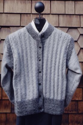 Needles used are smaller than usual for this weight yarn. This produces a garment which lasts longer and fits better. Sleeves are knitted from the shoulders down to the cuff. Stockinette gauge is 6 st/in on US 6..