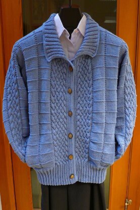 Sizes available represent actual finished width. Sweater knitted on smaller needles than customary; produces sturdy garment which lasts longer and fits better. Stockinette gauge: 5 3/4 st/in on US 5