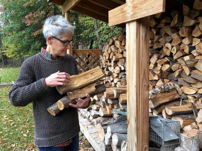 This comfy, midweight pullover in 10 sizes (c) is knit from the bottom up in the round with raglan shaping. The cozy, “grandpa sweater” look combines a knit/purl waffle texture with braided cabled seamlines and narrow stripe details—in both crew neck and V-neck options. With just a short undearm seam to finish, this pullover is a speedy, relaxing project for both experienced knitters and adventurous beginners.