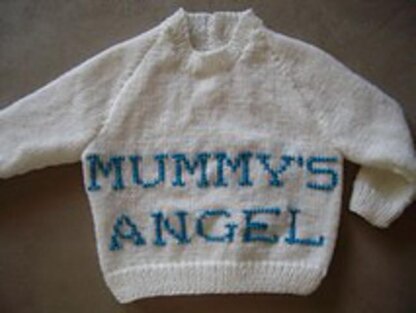 “Mummy's Angel” can be knitted into the front or embroidered on once the knitting is complete.