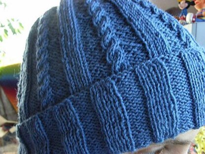Murhpy is a simple ribbed and cabled beanie with a folded ribbing. It will fit kids, men and women.