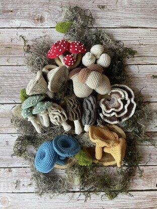 Transform your crochet projects into a woodland wonderland with this Mushroom Crochet Pattern Bundle! This Mushroom Harvest collection features 9 unique mushroom varieties, each designed with care to reflect their real-life counterparts. With the varieties also written in multiple sizes and shapes you're getting a whopping 21 individual patterns in total. This 44-page pattern bundle is perfect for nature lovers, whimsical decor enthusiasts, additions to your little ones' toy food collection, or anyone looking to add a fun twist to their crochet repertoire.