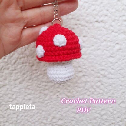 Mushroom keychain charm crochet pattern PDF. These cute small mushroom keychains will be a cute small gift for kids and adults. It can be used as keychain or bag / backpack charm, as mushroom garland for home or party decoration. !!!This listing is for a digital download crochet pattern - NOT a FINISHED ITEM!!! Size – Approximately 2 1/3” (6 cm.) This pattern is suitable for those who have crochet skills for intermediate and know the magic ring, single crochet, increase, decrease. Pattern is in standard American terms. The pdf file contains a step-by-step description and pictures. Pattern consists of 2 pages. It also has Crochet Techniques of Invisible decrease and Invisible join. You will need: - cotton or cotton blend yarn ( YarnArt Jeans) or any yarn 4 ply. - hook B (2 mm.) - polyester fiberfill - needle, scissors - metal keychain You are free to sell the finished item made from this pattern. PATTERN CAN"T BE SOLD!!! Happy crocheting!!! tappleta💙💛