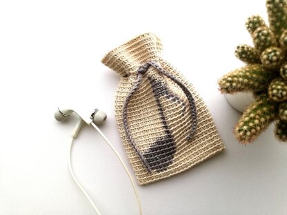 This tapestry crochet drawstring bag with a music note would be perfect for keeping your headphones. It is a very quick project and it is great for practicing tapestry crochet. The pattern includes a written pattern, a color chart and detailed photo instructions showing how to make this cute bag, so you could try it even if you are not familiar with tapestry crochet. Any thin yarn will work (the bag in the photos is made using Järbo 8/4 100% Cotton “Mercerized & Gassed” 50 g (offwhite and light gray)). This bag could also be a very nice and original gift!