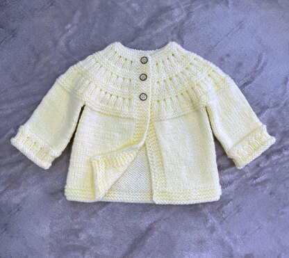 This is a unisex baby cardigan knitting pattern, designed for a timeless and versatile look. The cardigan is worked seamlessly from the top down, knitted flat (back and forth), with the sleeves completed in the round for a neat, seamless finish.