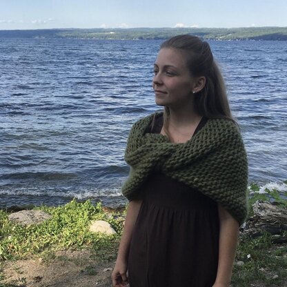 This is my take on the shawl Claire wore when traveling. It is done in a garter stitch, worked from the top down. Done in a small size, instructions for medium and large are included. Easy for beginners. The Air Merino wool makes it super-soft and light weight, but very warm and will shed rain.