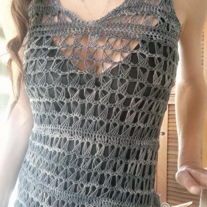 The project have a negative ease of about 15 cm, it means that the dress is smaller than actual body measurements, but the stitch is elastic enough to be stretched up to 15 cm.