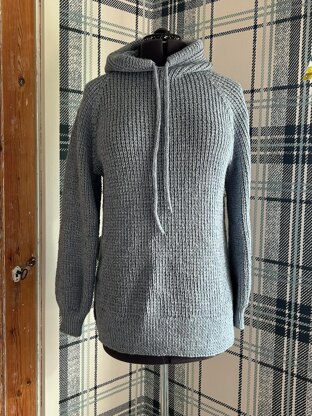 This sweater is knitted from the bottom to the top with an easy pattern of knitted and purled stitches.