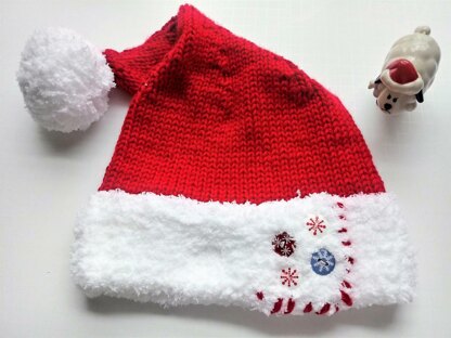 - This hat is knitted 2 strands as 1 strand in red color.