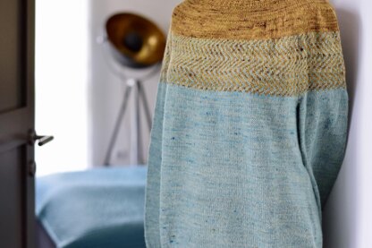 Myrrine sweater is worked seamlessly in the round, from the bottom up to the armholes. The body and sleeves are worked separately. Some short rows are added to the back of the sweater for a better fit, before joining body and sleeves for working the yoke to the neck edge. After last decrease round in the yoke, some short rows are added again across the back of the neck, to raise it higher than the front for the proper fit of the garment. The sweater is intended to be worn with approximately 10.25 cm / 4” positive ease, however the sleeves are relatively skinny, to counterbalance the loosely fitted body. The pattern contains schematics, charts and written instructions, photo and video tutorials. It has been professionally tech edited and test knitted.