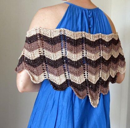The Nadina Shawl combines a scalloped stitch pattern with stripes to create a versatile and elegant shawl. The scalloped stitch pattern, reminiscent of fish scales, is easy to memorize. Nadina is worked from the bottom up, so the size is easy to customize.