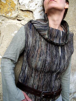 Knitting pattern in 3 different sizes Project represents the beauty of simple, modern and minimalist cut which shows off female body - due to the sideway garter stitching - and frames the neck gloriously with differently textured yarns in earth tones. Name recalls the view of fields after the winter has gone.