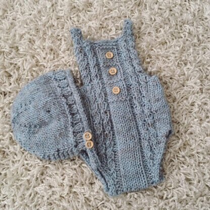 Fits both newborn and 21-22 inch reborn size knit romper and bonnet pattern THIS IS NOT THE FINISHED ITEM