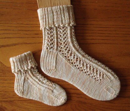 Oh, I loved to read when I was growing up and made the weekly walk to Taylor Memorial Library to get my books! My brothers read The Hardy Boys while I got lost in the Nancy Drew Mystery Series. The Secret of the Old Lace is book 59 in the series. What books did you enjoy reading when you were a child? When I started this sock I wasn't sure what I was going to do so that was the mystery for me! This is the 4th pattern in the Recollections of Childhood series. I am having so much fun with this! They are knit from cuff to toe in an easily memorized and fun lace stitch. This pattern isn't a "yarn hog" either. I got a pair of adult and children socks out of 3 of the Panda Wool! Thanks for looking, I really appreciate it.