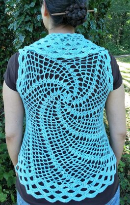 With a nod to the rivers and canals worked by Nan's and Carolina's fathers, Nan's Shrug circles with net-like lace between spiral arms. Worn open, or closed with a shawl pin or button, the soft Cormo wool allows for a sophisticated drape and a shell edging that ripples like the water through the locks.